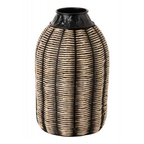 Informations Techniques : Dimensions : D. 33,5 x H. 55,5 cm Matières : Rotin, Roseau, Bambou & Corde Spécificités : Tendance & Moderne Vase Déco Forme Ronde A Poser Poids : 1,9 kg Couleur : Noir & Naturel