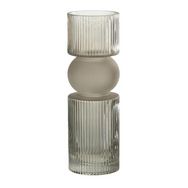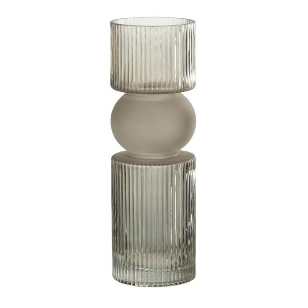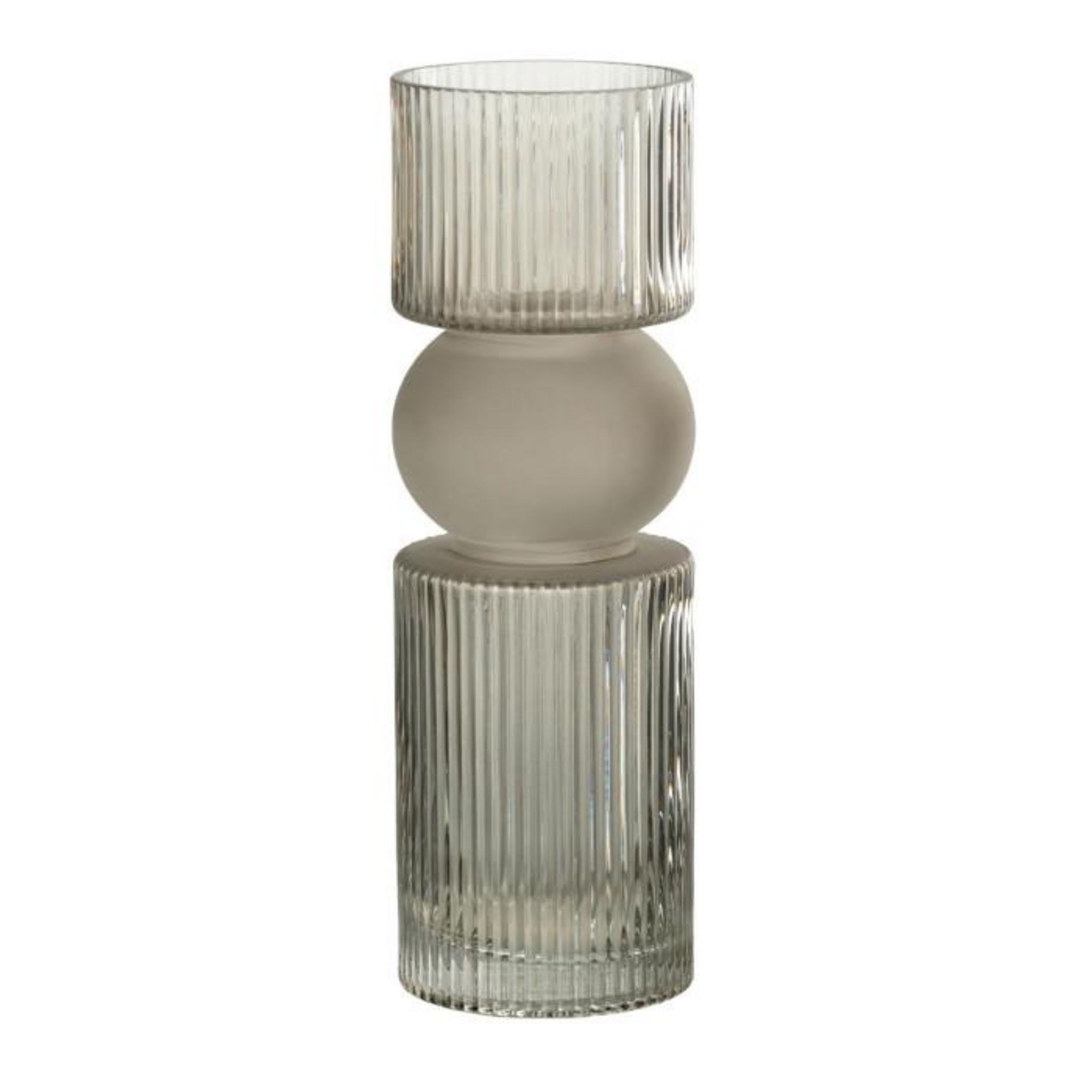 Informations Techniques : Dimensions : L. 10 x l. 10 x H. 30 cm Matière : 100% Verre Spécificités : Pratique & Tendance Vase déco Design bonbon Vendu à l'unité Contenance : 2500 ml Poids : 1,05 kg Couleur : Gris