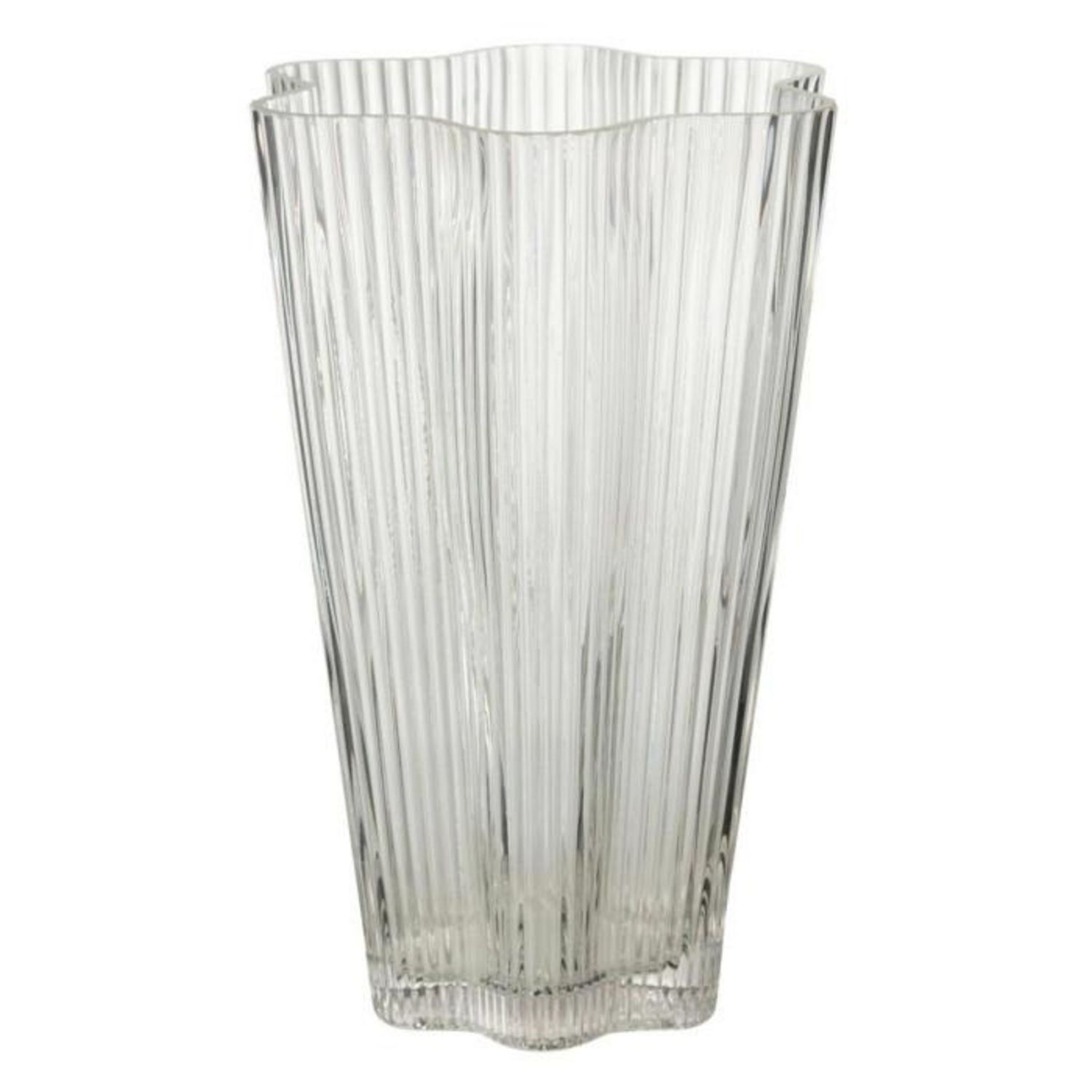 Informations Techniques : Dimensions : L. 18 x l. 16,5 x H. 26,5 cm Matière : 100% Verre Spécificités : Élégant & Déco Vase ondulé Design texturé Vendu à l'unité Poids : 1,36 kg Couleur : Transparent