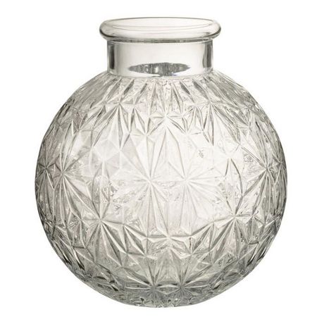 Informations Techniques : Dimensions : D. 24 x H. 27 cm Matière : Verre Spécificités : Déco & Utile Vase Design Style Diamant Forme Ronde Vendu à l'unité Poids : 1,92 kg Couleur : Transparent