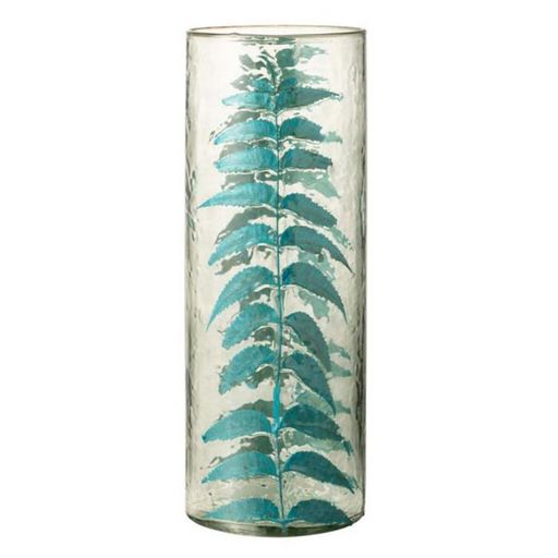 Informations Techniques : Dimensions : D. 16 x H. 42,5 cm Matière : Verre Spécificités : Pratique & Utile Vase Design Forme Ronde Imprimé Feuille Poids : 1,965 kg Couleur : Bleu