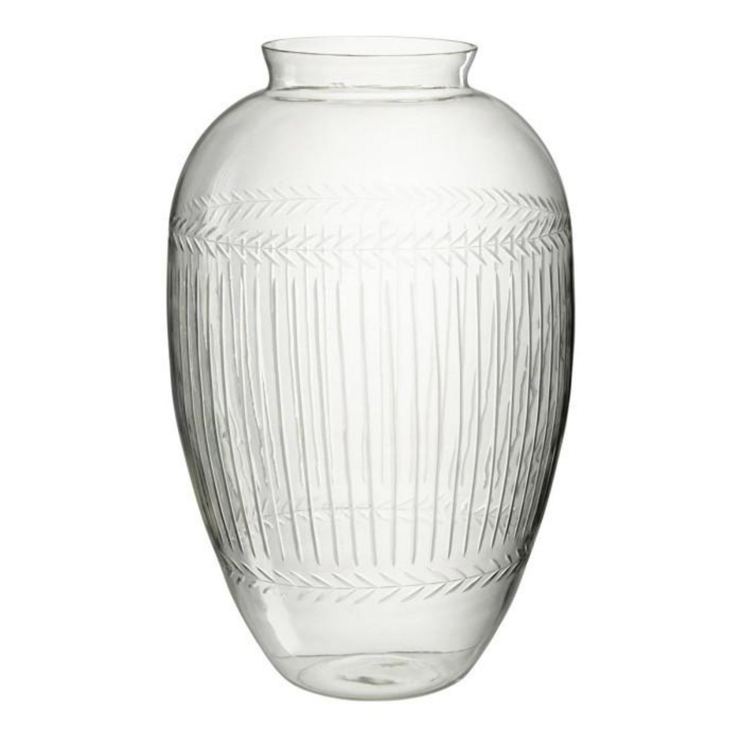 Informations Techniques : Dimensions : D. 37 x H. 61 cm Matière : 100% Verre Spécificités : Design & Élégant Avec motifs Forme ronde Poids : 7,47 kg Couleur : Transparent