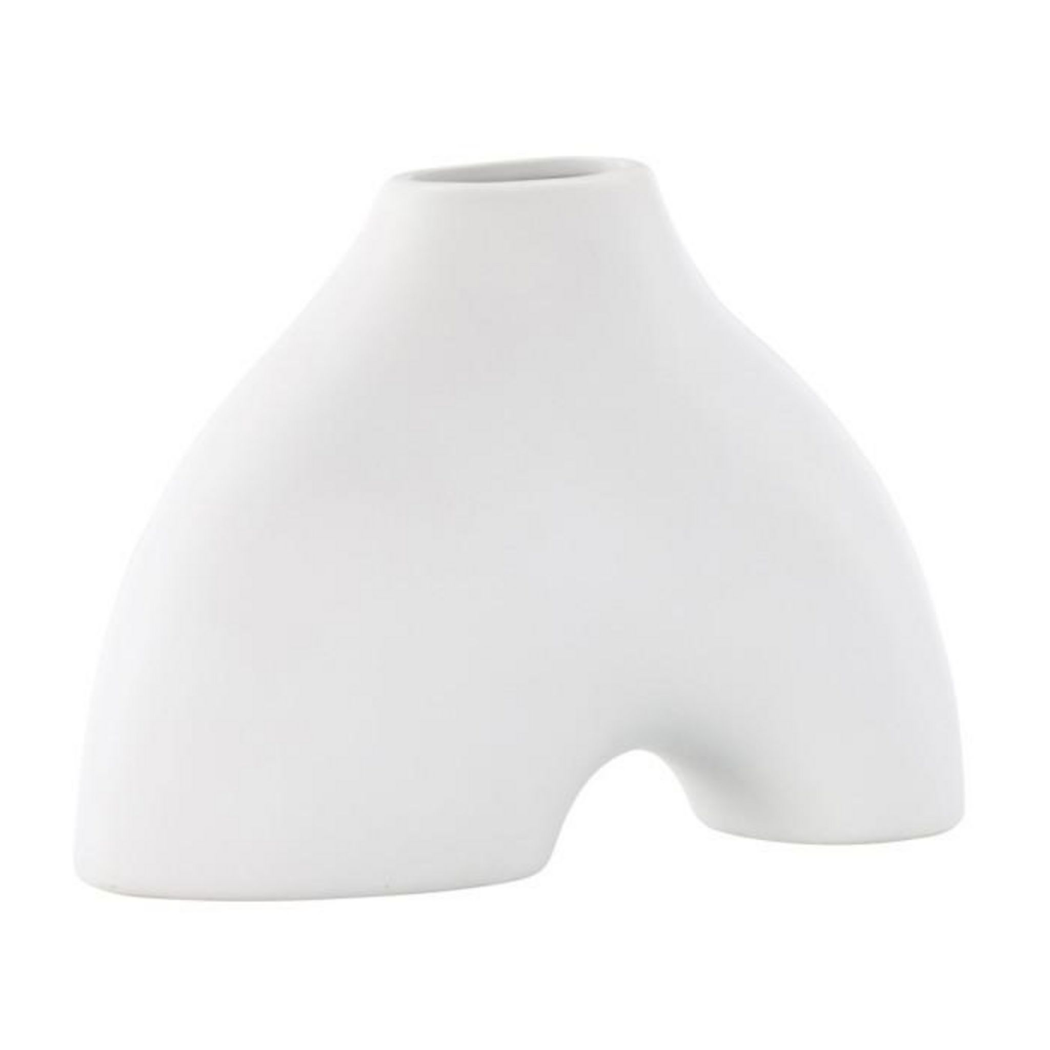 Informations Techniques : Dimensions : L. 21 x l. 8 x H. 15 cm Matière : Grès Spécificités : Pratique & Déco Vase design Style moderne Finition : glaçage Poids : 0,65 kg Couleur : Blanc