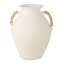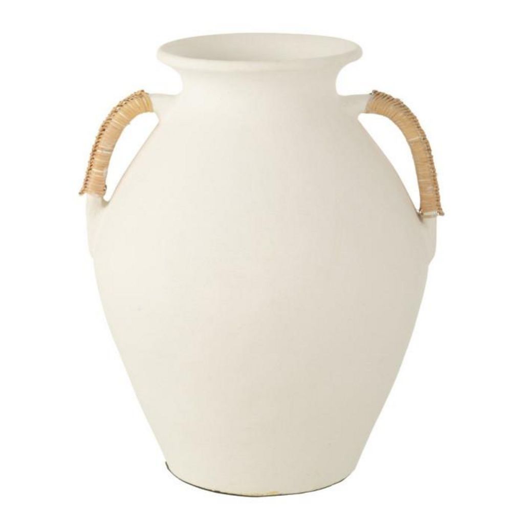 Informations Techniques : Dimensions : L. 34 x l. 34 x H. 43 cm Matières : 90% Terre cuite & 10% Rotin Spécificités : Pratique & Tendance Vase déco Design pot Avec poignées Vendu à l'unité Forme ronde Poids : 3,2 kg Couleur : Blanc & Naturel