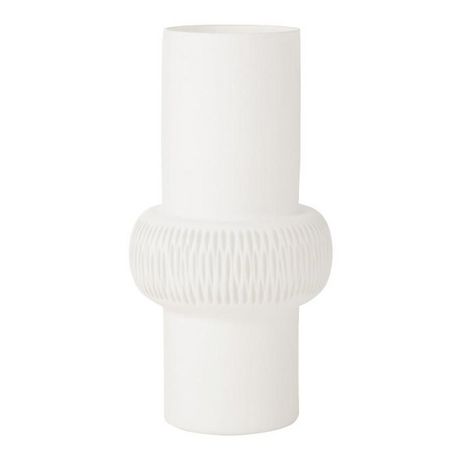 Informations Techniques : Dimensions : D. 22 x H. 41 cm Matière : Verre Spécificités : Déco & Utile Vase design Motifs lignes Forme ronde Vendu à l'unité Poids : 2,55 kg Couleur : Blanc