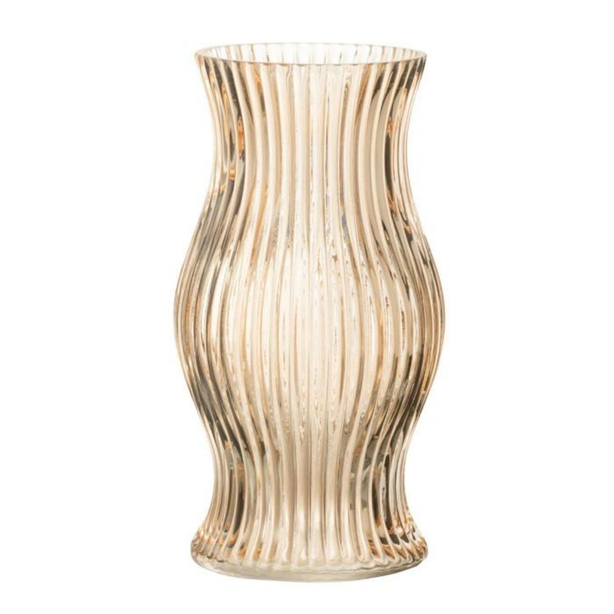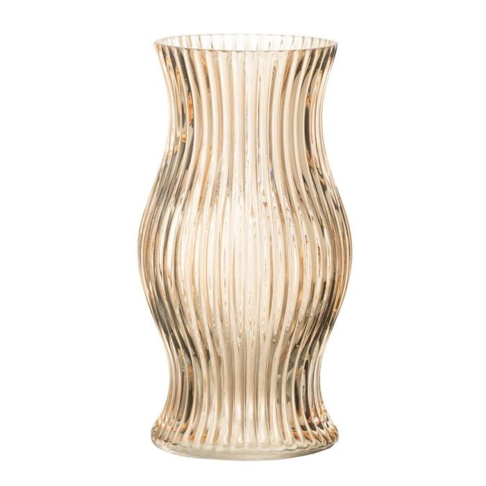 Informations Techniques : Dimensions : L. 14 x l. 14 x H. 26,5 cm Matière : 100% Verre Spécificités : Pratique & Design Vase déco évasé Verre strié Forme ronde Poids : 1,21 kg Couleur : Pêche