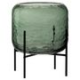 Informations Techniques : Dimensions : D. 18 x H. 16 cm Matière : Verre & Métal Spécificités : Tendance & Moderne Vase Déco Sur Pied Design Irrégulier Poids : 0,95 kg Couleur : Vert & Noir