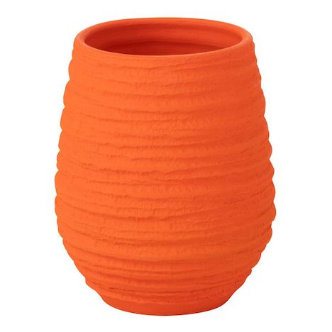 Informations Techniques : Dimensions : L. 21 x l. 18 x H. 23 cm Matière : 100% Céramique Spécificités : Coloré & Utile Vase design strié Vendu à l'unité Poids : 2,34 kg Couleur : Orange