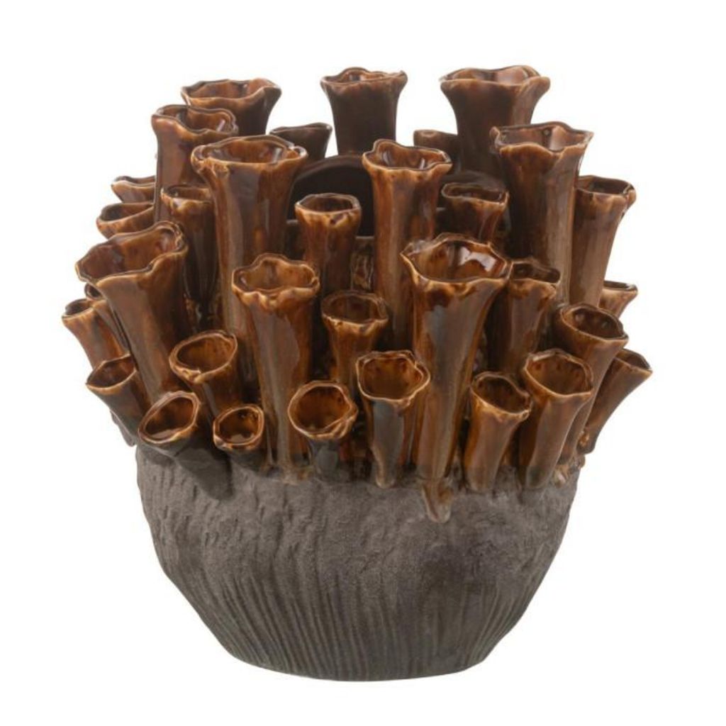 Informations Techniques : Dimensions : L. 28,5 x l. 23,5 x H. 28 cm Matière : Argile Spécificités : Moderne & Tendance Vase design Forme anémone Facile d'entretien & d'utilisation Vendu à l'unité Poids : 3,82 kg Couleur : Marron
