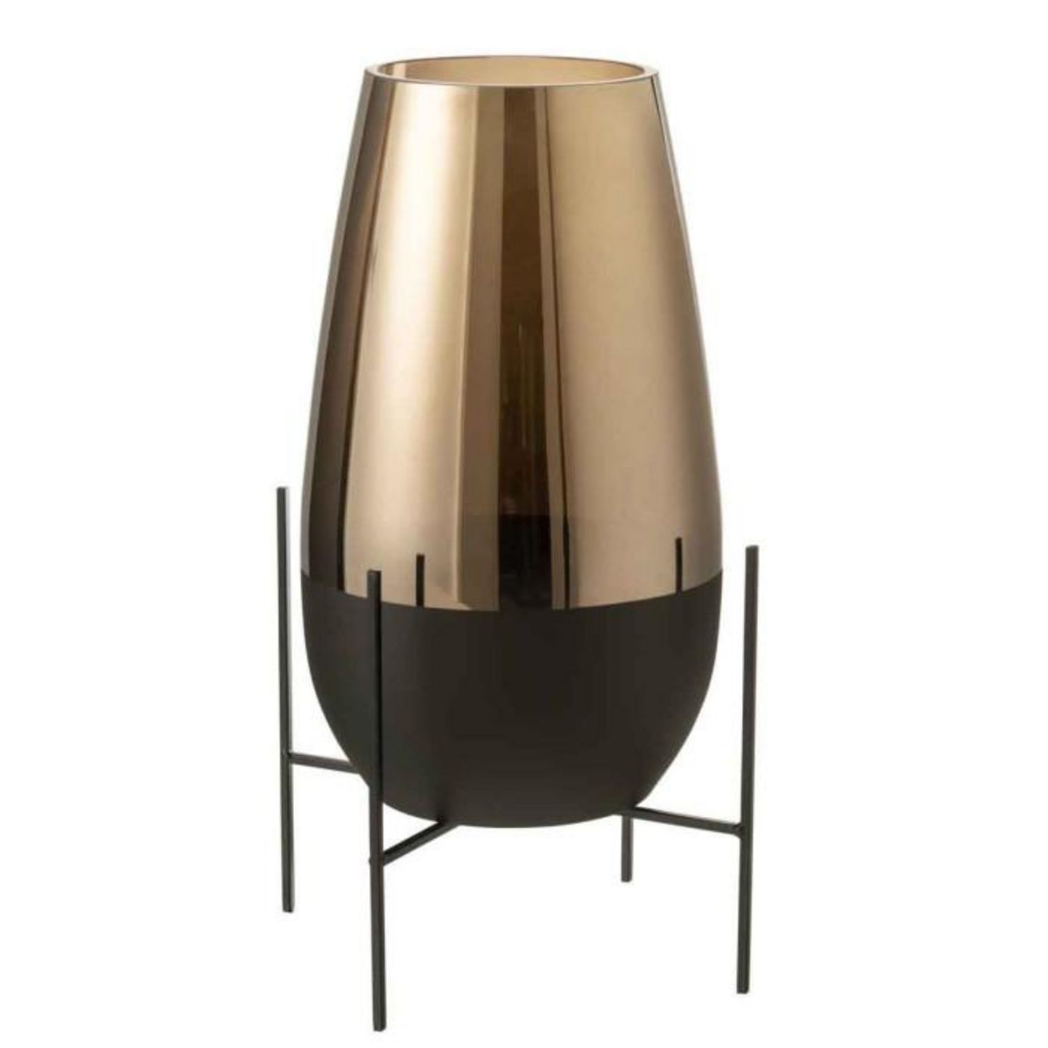 Informations Techniques : Dimensions : L. 23 x l. 40 x H. 48 cm Matière : Verre Spécificités : Tendance & Moderne Vase Design Sur Pied Poids : 1,9 kg Couleur : Or & Noir
