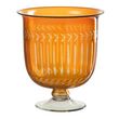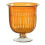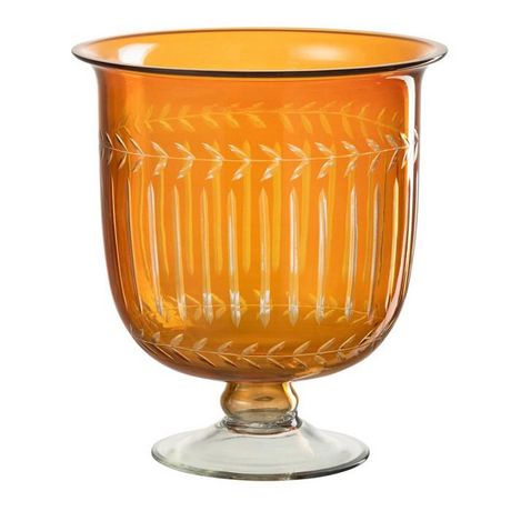 Informations Techniques : Dimensions : L. 22,5 x l. 22,5 x H. 24,5 cm Matière : Verre Spécificités : Design & Utile Vase à pied Style romain Passage au lave-vaiselle Vendu à l'unité Bougies non incluses Poids : 1,39 kg Couleur : Orange & Rouille