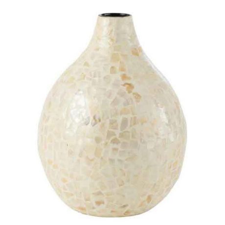 Informations Techniques : Dimensions : L. 25 x l. 25 x H. 33 cm Matières : Pierre, Bambou, Roseau & Rotin Spécificités : Tendance & Pratique Vase Déco Forme Ronde Design Goutte Motif Mosaïque Couleur : Ivoire
