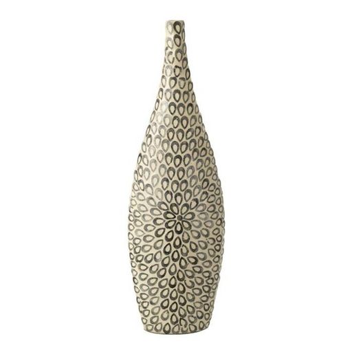 Informations Techniques : Dimensions : L. 22 x l. 13 x H. 84 cm Matières : Papier & Coquillage Spécificités : Pratique & Tendance Vase long déco Design réalisé en coquillage Vendu à l'unité Poids : 2,07 kg Couleur : Noir & Blanc