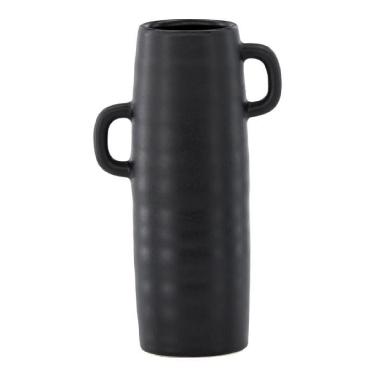 Informations Techniques : Dimensions : D. 15 x H. 25,5 cm Matière : Grès Spécificités : Moderne & Élégant Vase design ondulé Avec petites anses Poids : 0,55 kg Couleur : Noir