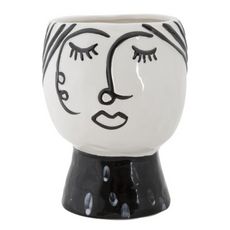 Vase Pot Visage en Porcelaine Face 18cm Blanc & Noir