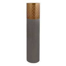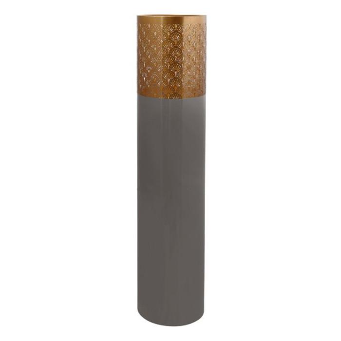 Informations Techniques : Dimensions : D. 25 x H. 121 cm Matières : 100% Fer Spécificités : Résistant & Robuste Vase design Forme Ronde Étanchéité intérieure Fabrication & Montage : Fait Main Poids : 3,7 kg Couleur : Gris & Or