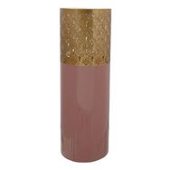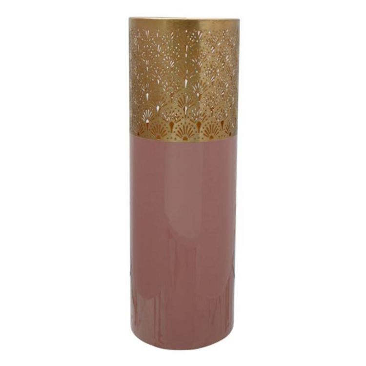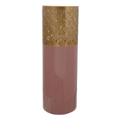 Informations Techniques : Dimensions : D. 20 x H. 60 cm Matières : 100% Fer Spécificités : Résistant & Robuste Vase design Forme Ronde Étanchéité intérieure Fabrication & Montage : Fait Main Poids : 1,6 kg Couleur : Rose & Or