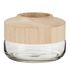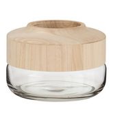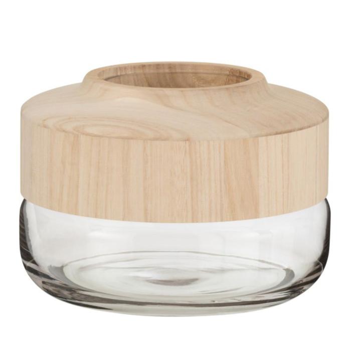 Informations Techniques : Dimensions : D. 25 x H. 17,5 cm Matières : Verre & Bois Spécificités : Tendance & Original Vase design Forme Ronde Facile d'entretien & d'utilisation Poids : 1,6 kg Couleur : Marron Clair & Transparent