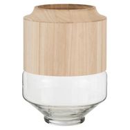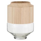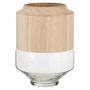 Informations Techniques : Dimensions : D. 23 x H. 30,5 cm Matières : Verre & Bois Spécificités : Tendance & Original Vase design Forme Ronde Facile d'entretien & d'utilisation Poids : 1,8 kg Couleur : Marron Clair & Transparent