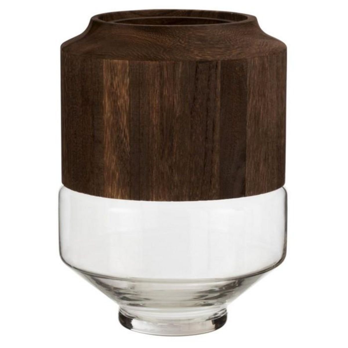 Informations Techniques : Dimensions : D. 23 x H. 31 cm Matières : Verre & Bois Spécificités : Tendance & Original Vase design Forme Ronde Facile d'entretien & d'utilisation Poids : 1,96 kg Couleur : Marron & Transparent