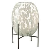 Informations Techniques : Dimensions : D. 24 x H. 38 cm Matière : Verre Spécificités : Pratique & Chic Vase Déco Sur Pied Forme Ronde Design Tâches Poids : 1,8 kg Couleur : Gris & Blanc