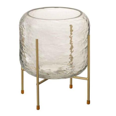 Informations Techniques : Dimensions : D. 18 x H. 16 cm Matières : Verre & Métal Spécificités : Tendance & Moderne Vase sur Pied Forme Ronde Poids : 0,9 kg Couleur : Transparent
