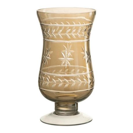 Informations Techniques : Dimensions : D. 11,5 x H. 22 cm Matière : Verre fumé Spécificités : Déco & Utile Vase à pied Design étoile Forme ronde Bougies non incluses Poids : 0,6 kg Couleur : Greige & Gris