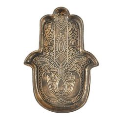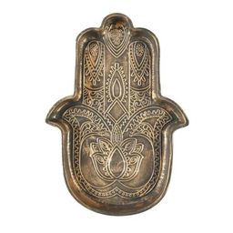 Informations Techniques : Dimensions : L. 20 x l. 14,5 x H. 2 cm Matière : Céramique Spécificités : Chic & Tendance Vide-poche Design main de fatma Effet patiné Style éthnique Poids : 0,32 kg Couleur : Marron