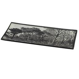 Informations Techniques : Dimensions : L. 10 x l. 21 x H. 1,5 cm Matière : Verre Spécificités : Pratique & Utile Vide-Poche Forme Rectangulaire Motif Imprimé Style Vintage & Rétro Poids : 0,175 kg Couleur : Noir & Gris