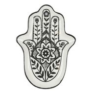 Informations Techniques : Dimensions : L. 1,5 x l. 11,2 x H. 8 cm Matières : Céramique & Argile Spécificités : Chic & Tendance Vide-Poche Design Main Style Ethnique Poids : 0,1 kg Couleur : Noir & Écru