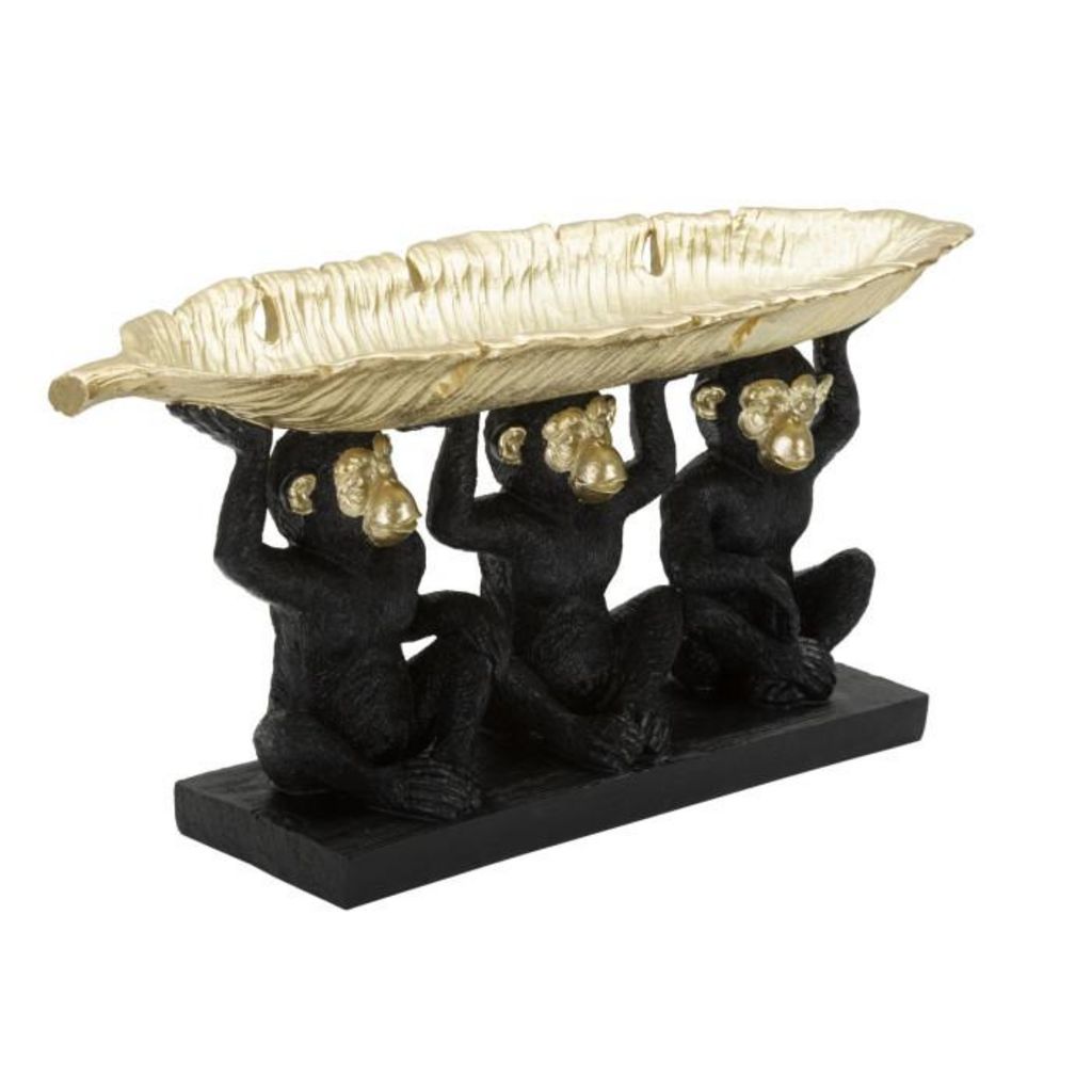 Vide-Poche Statuette 3 Singes 43cm Noir & Or
