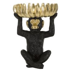 Vide-Poche Statuette Singe Banane 31cm Noir & Or