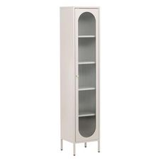 Informations Techniques : Dimensions : L. 37 x l. 35 x H. 180 cm Matières : Acier & Verre Spécificités : Élégante & Fonctionnelle Vitrine sur pied Avec porte en verre ondulé Nombre de colis : 1 Poids max supporté : 25 kg Poids : 23,5 kg Couleur : Beige