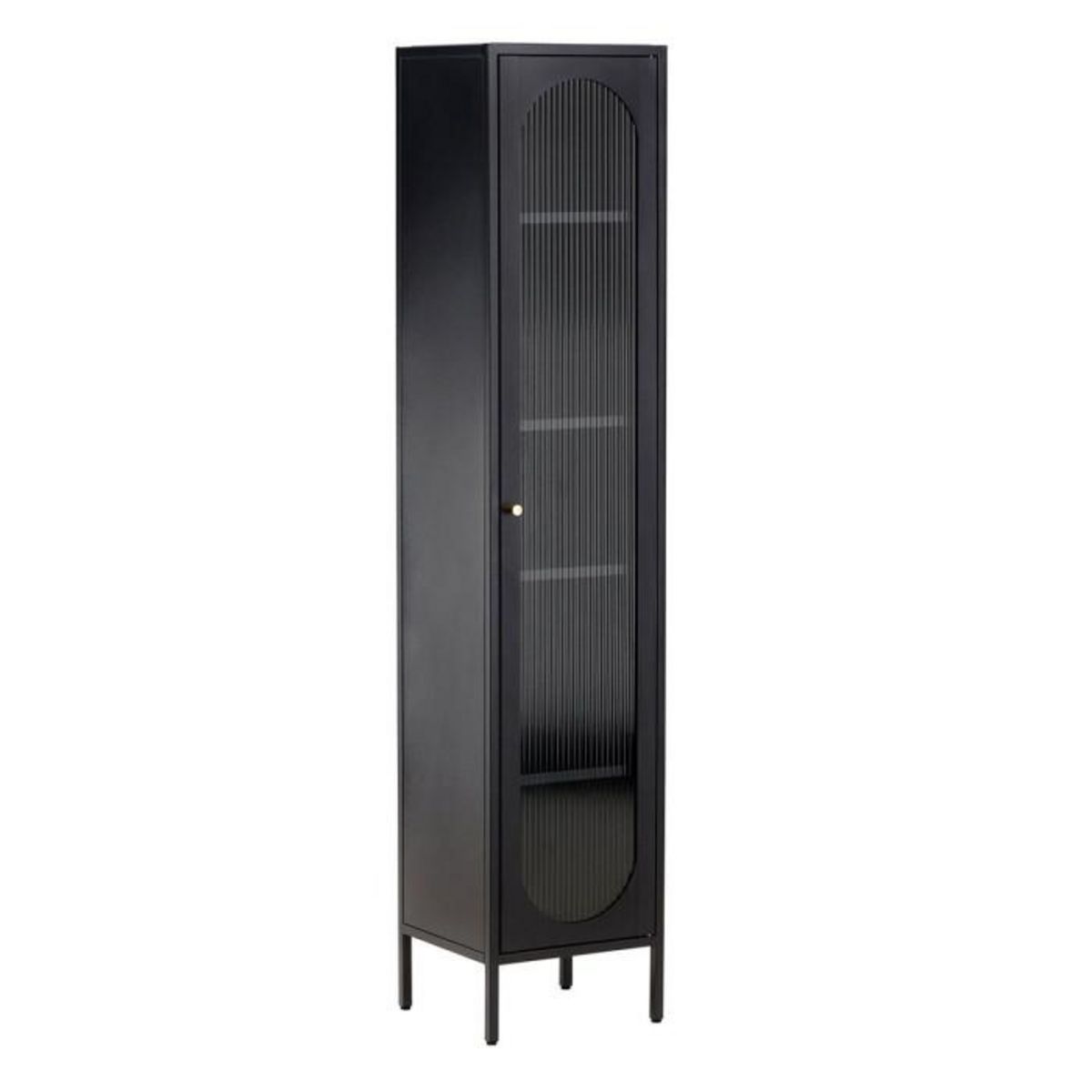 Informations Techniques : Dimensions : L. 37 x l. 35 x H. 180 cm Matières : Acier & Verre Spécificités : Élégante & Fonctionnelle Vitrine sur pied Avec porte en verre ondulé Nombre de colis : 1 Poids max supporté : 25 kg Poids : 23,5 kg Couleur : Noir