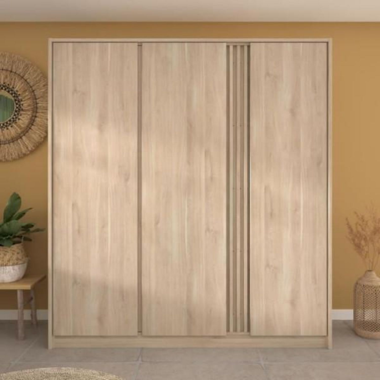 Armoire de chambre - Chene - 3 portes - 185 x 52 x 203 cm - PARISOT