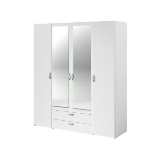 Armoire VARIA - Décor blanc - 4 portes battantes + 2 miroirs + 2 tiroirs - L 160 x H 185 x P 51 cm - PARISOT
