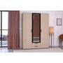 Armoire VARIA - Décor chene et noir - 3 portes battantes + 2 tiroirs + 1 miroir - L 150 x H 200 x P 51 cm