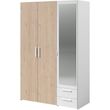 Armoire VARIA - Panneaux de particules revetu papier - Décor chene et blanc - 3 portes - L 120,3 x P 5,7 x H 185 cm