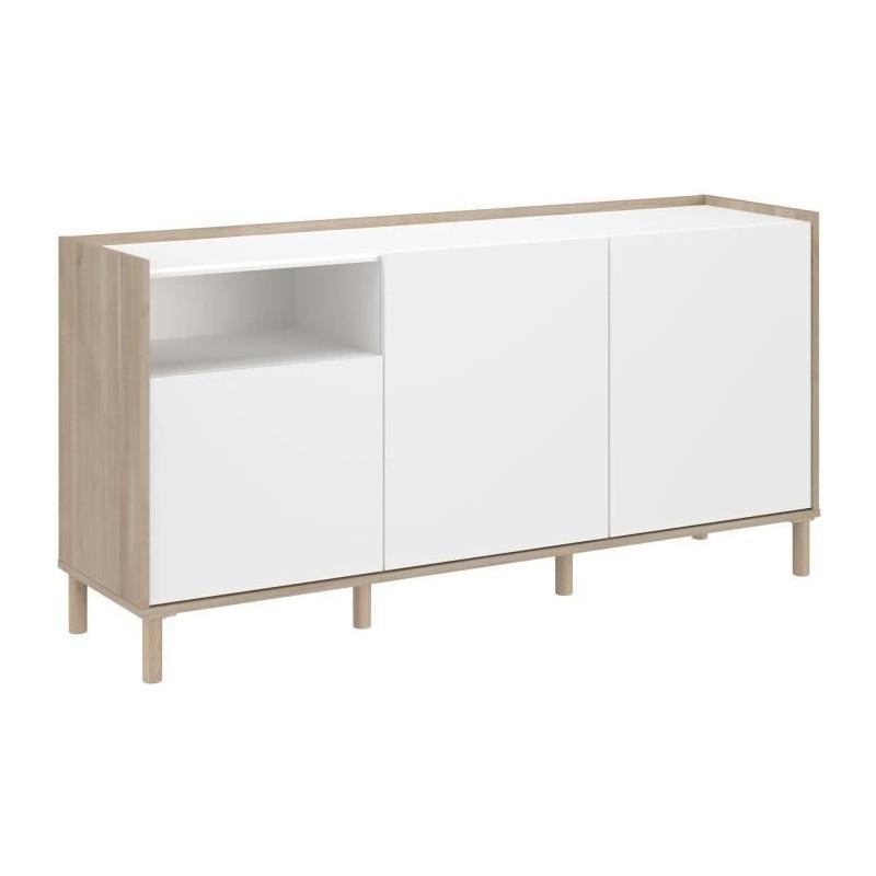 Buffet bas - MORPHOS - Décor blanc / Chene - 3 portes - PARISOT