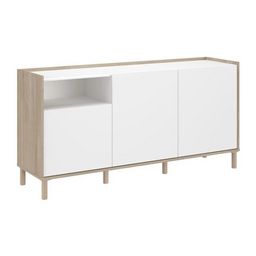 - Design Élégant : Le buffet bas MORPHOS combine avec élégance le blanc et le chêne pour un look moderne.
