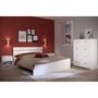 Ensemble chambre BOSTON Blanc - Panneaux de particules revetus de papier décor blanc - 1 lit pour couchage 140x190 cm - Livré sans matelas ni sommier - 2 chevets 1 tiroir et 1 niche - 1 commode 4 tiroirs - Dimensions LxHxP Lit : 145x75x193 cm - Chevet : 40x40x33 cm - Commode : 76.5x106.3x39.8 cm