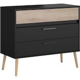 Craquez pour le design épuré et chaleureux de la commode AALBORG. Inspirée du style scandinave, elle marie avec élégance le noir profond et le chene naturel pour un rendu moderne et cosy. Ses trois tiroirs spacieux vous permettent de ranger facilement vos vetements, linge de maison ou objets du quot