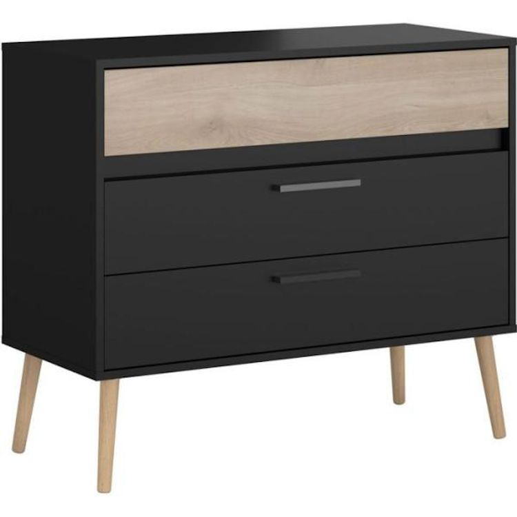 Commode - AALBORG - 3 tiroirs - Décor Noir et chene - Style Scandinave - L90,8 x P39,9 x H77,5 cm - PARISOT