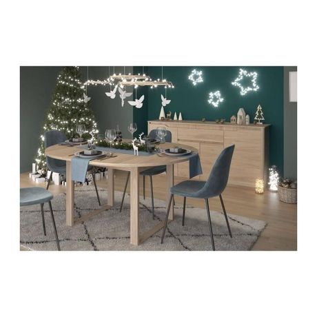 La table ronde BETTY passe de 120 cm à 155 cm grâce à son mécanisme d'extension intuitif, permettant d'accueillir confortablement 4 à 6 convives. Son plateau en chêne résistant et son piétement stable en font le cœur de vos repas familiaux ou dînars entre amis.