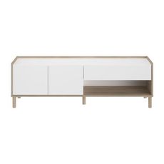 Le meuble TV MORPHOS allie esthétique moderne et praticité avec son décor blanc et chêne. Son design épuré s'intègre parfaitement dans les intérieurs actuels tout en offrant un rangement optimisé grâce à ses 2 portes, 1 tiroir et 1 niche.