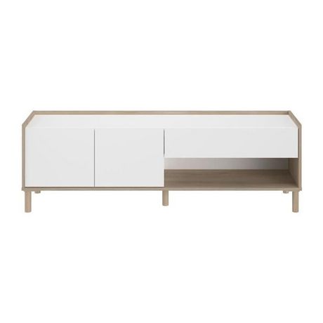 Meuble TV - MORPHOS - Décor blanc / Chene - 150 x 47,3 x 40 cm - PARISOT