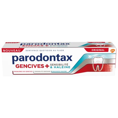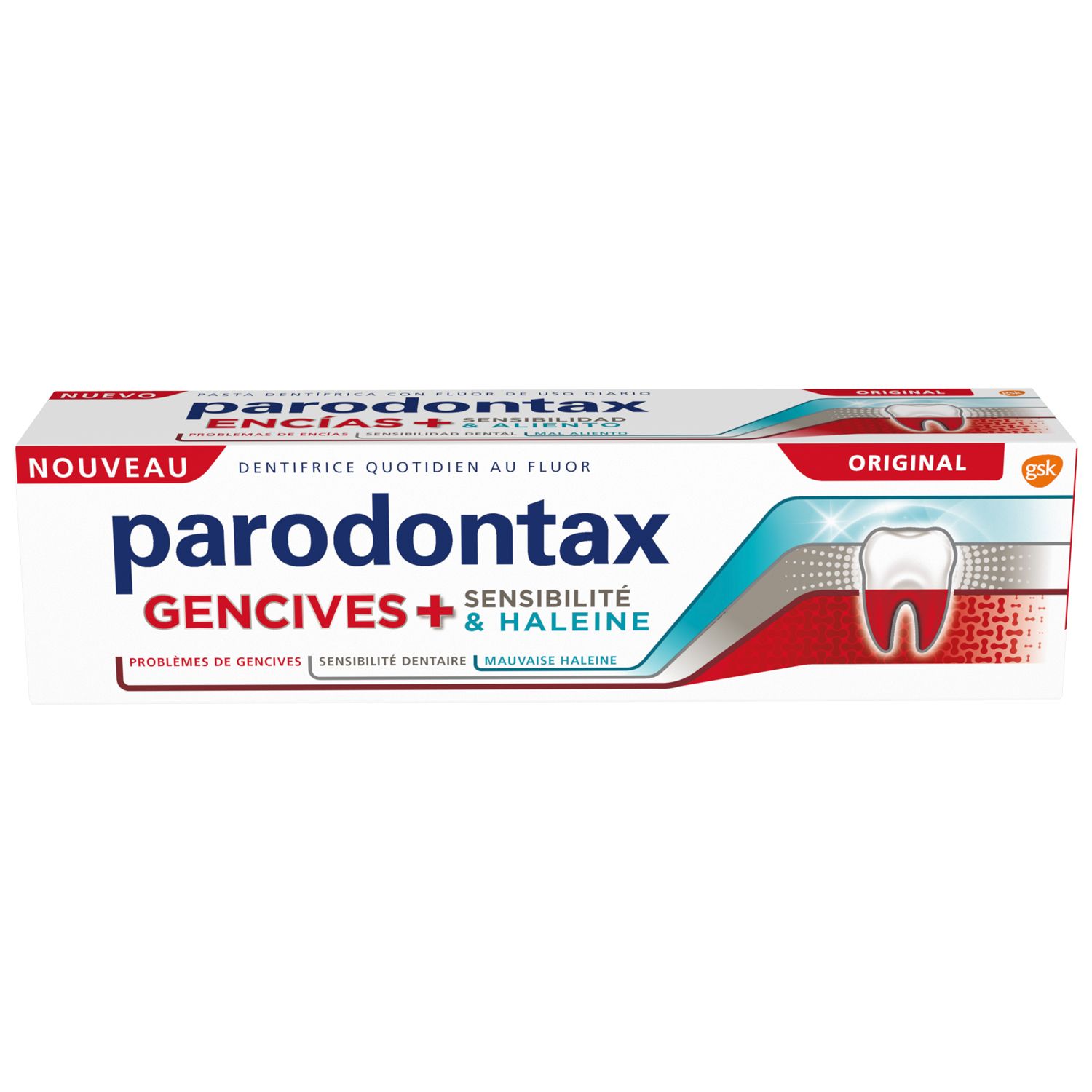 Nouvelle référence PARODONTAX avec 2 nouveaux ingrédients (Fluorure d’étain et Chlorure de Zinc): 3 bénéfices en 1: une formule unique au marché. Le Fluorure d’étain a une double action pour la santé des gencives et contre la sensibilité dentaire. Dentifrice quotidien – pâte blanche au gout frais de menthe identique aux dentifrices quotidiens du marché