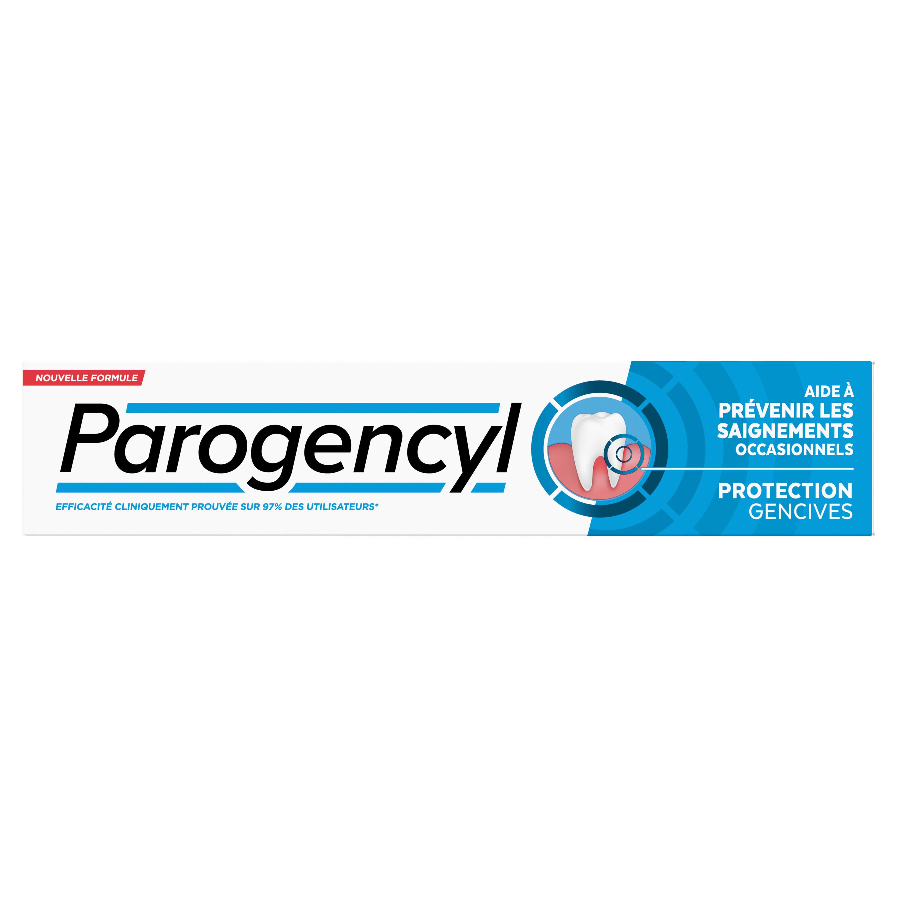 "Les gencives sont quotidiennement soumises à des agressions extérieures, notamment lorsqu'on mange et boit, ce qui entraine l'accumulation de plaque dentaire. L'utilisation bi-quotidienne de Parogencyl Protection Gencives contribue à préserver des gencives saines. Se brosser les dents deux fois par jour avec Parogencyl Protection Gencives contribue à maintenir une bonne hygiène bucco-dentaire. Parogencyl Protection Gencives contient : - du Zinc Minéral à 3% qui, grâce à son action antibactérienne, limite l'accumulation de la plaque dentaire et favorise la prévention de l'inflammation gingivale occasionnelle. - du Fluor (1450 ppm) pour renforcer l'émail et favoriser la prévention des caries."