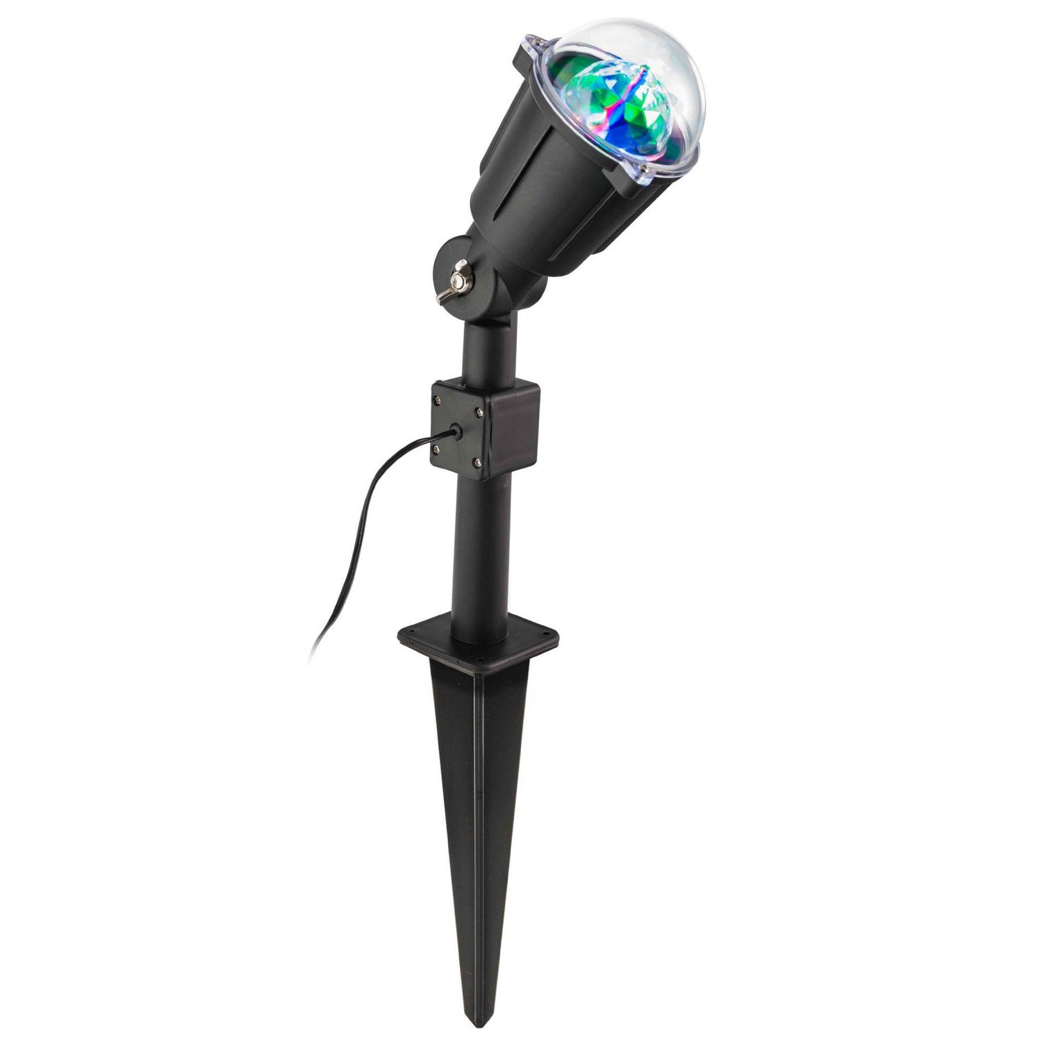 Produit: Projecteur décoration LED Univers: Noël Caractéristiques: Tête rotative à facettes / Tête réglable Se fixe ou se plante dans le jardin Longueur du câble: 5 mètres Éclairage: LED multicolore Voltage: 230 v - 50 hz - 3 w Normes: IP44 Marque: Party Lamp