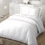 Parure complète drap + drap-housse + taies d'oreiller en percale pur coton, une toile de qualité supérieure au tissage très serré, incomparablement fine, douce et résistante... un bonheur pour la peau ! On aime aussi ce blanc éclatant (so chic !) et le détail raffiné du liseré contrastant. Un linge